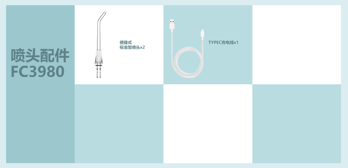 产品组成:主机/水箱/标准喷头x2/DC充电线x1